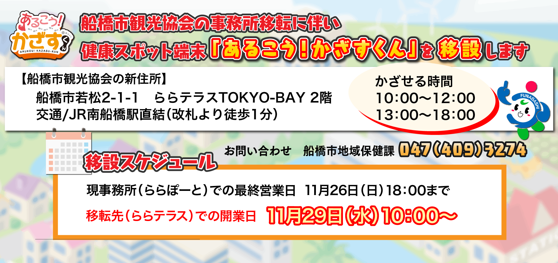 船橋市観光協会に設置している「あるこう!かざすくん」の移設について